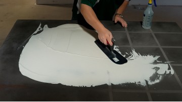 How to mix and apply metallic epoxy, garage epoxy flakes and table top epoxy applications.