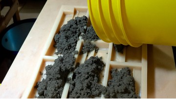 How to cast decorative concrete countertops, concrete spray and backer mix, form liners, GFRC concrete panel casting.